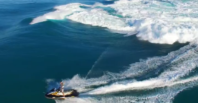 The rare footage that is enough to make anyone go spellbound is said to be the first time ever. It is the first time that some have filmed in the standing waves while riding the jet ski.