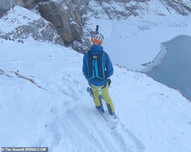 Howell jumped off the icy summit in Switzerland’s Oeschinen area and then parasailed to land on the Kandersteg frozen lake, covering a vertical distance of 5,177 feet.