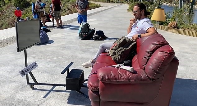 29-year-old Hasan Kaval from Izmir, Turkey customized a red sofa with a metal frame to which he attached wheels, a footstool, television, lamp, and a parachute.