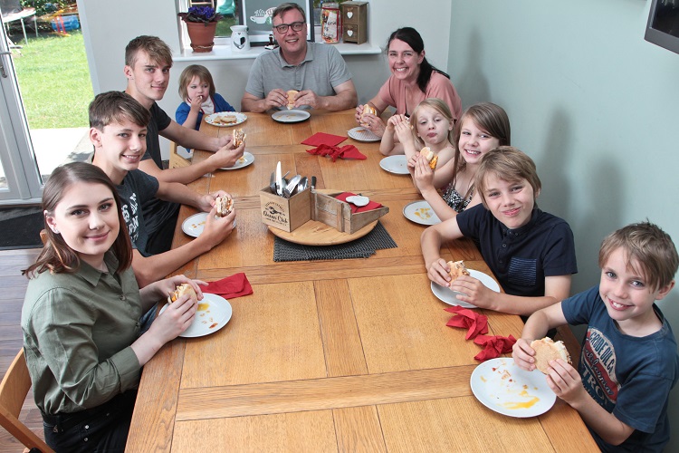 From the kitchen of the family home in Evesham, Worcs, Caroline cooks up various meals that feed husband John, 46, and children Ellena, 21, Joshua, 18, Daniel, 15, Finlay, 11, Henry, 10, Sophia, 8, Florence, 6, and Emilia, 2. That’s no mean feat with the various tastes and appetites that are sure to exist in such a large family.