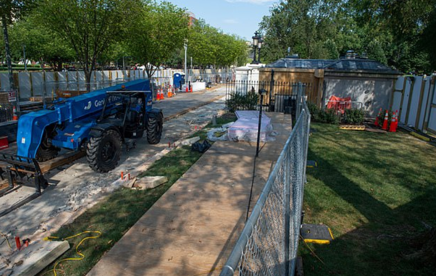 The construction will later bring improvements to the fences around the Eisenhower Executive Office Building the Treasury Department, located on either side of the White House.
