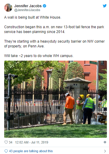 The Secret Services revealed that the construction is important for security and will have wider and stronger pickets.