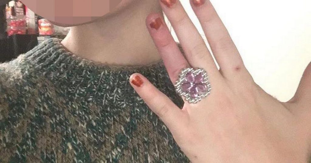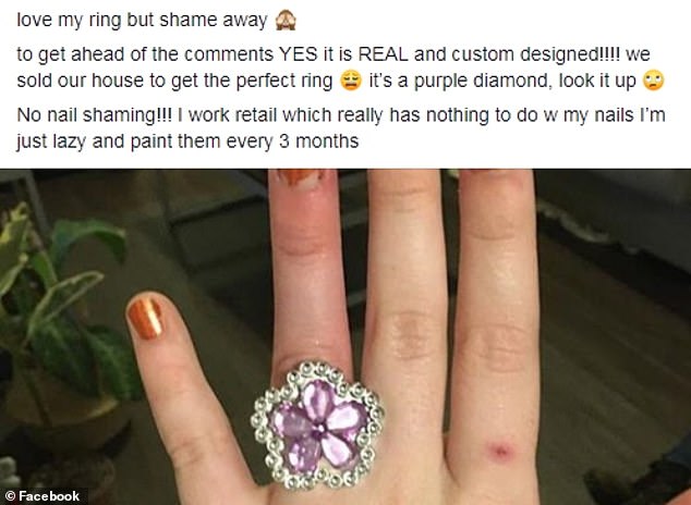 The woman who is from the US shared the photo of herself wearing her flower-shaped ‘purple diamond’ ring to the That’s It, I’m Ring Shaming group.