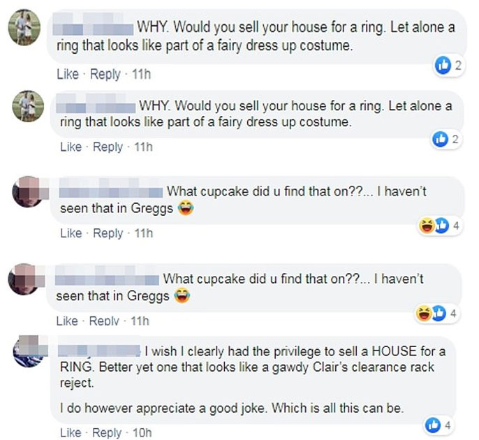 Another said: “This is a joke. Either that or ya’ll have way more serious issues than the ring. Selling a house for a ring? Good luck in life. Ya’ll desperately need it.“