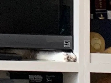 As you have probably noticed by now, the cat is hiding behind the TV and reaching out with its paws!