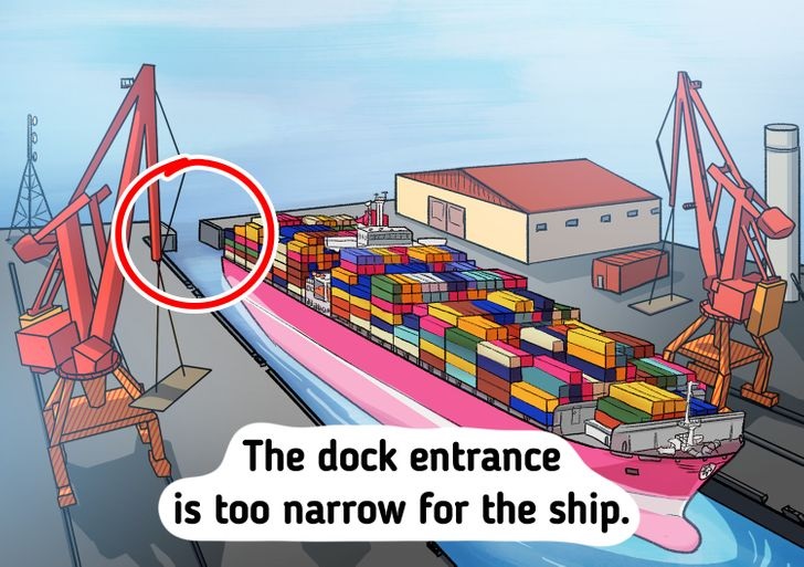 How long did it take you to notice that the entrance to the dockyard was way too narrow for the massive ship to enter?