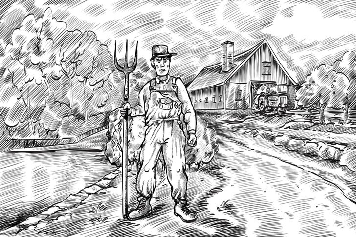 This time, you’ll be looking at a picture of a farmer working in the countryside.