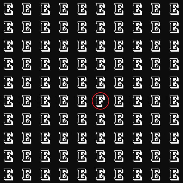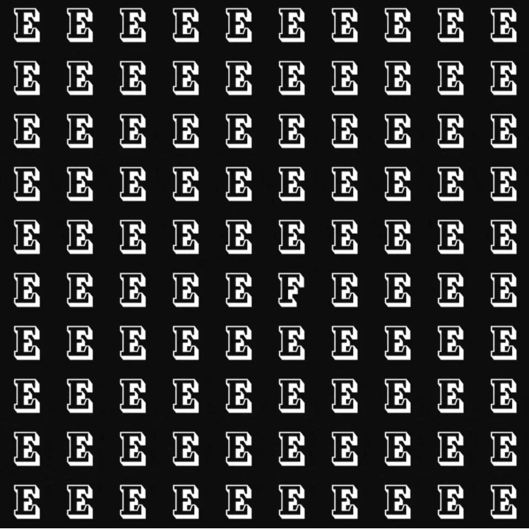 Visual Puzzle #1: Find the letter ‘F’ among the E’s.