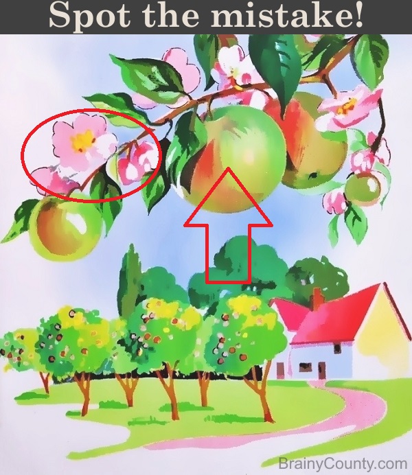 See those blossoms? And those apple fruits? Here’s the catch. They can’t possible appear on the same tree at the same time!