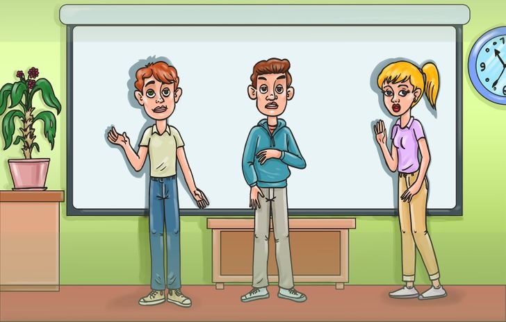 To get to the correct answer, focus not on how the three subjects look like but on what’s behind them – or what’s not!