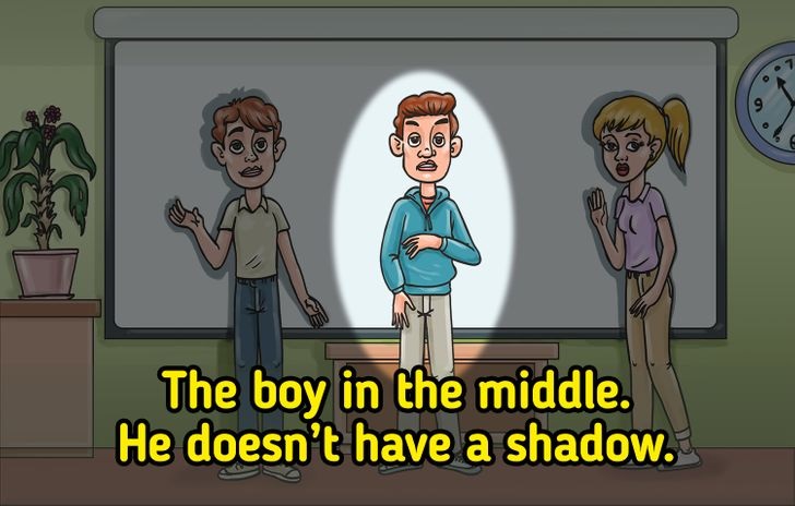 As it happens, the guy in the middle is not a real person because he doesn’t have a shadow!