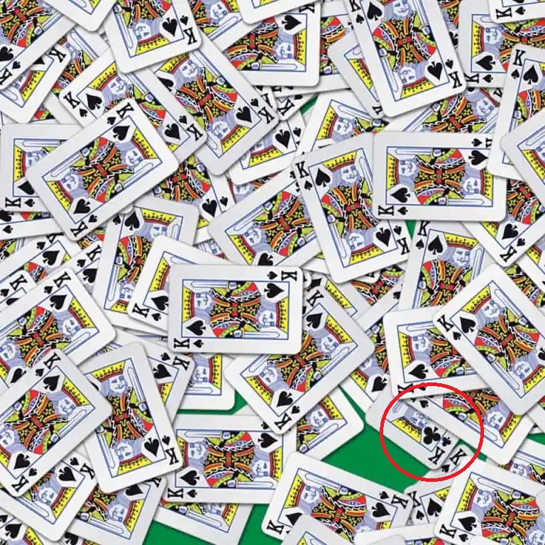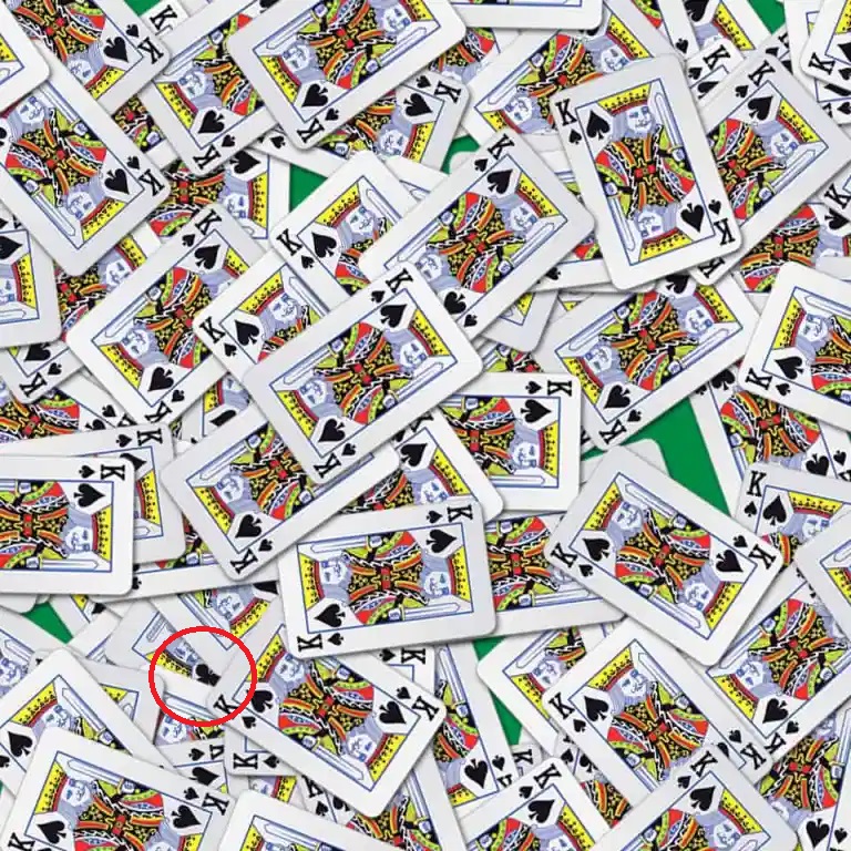 As you may have noticed, all of the cards appear to be kings of spades. So, where’s the catch? One of the playing cards in the picture is not like the rest of them. Find it!