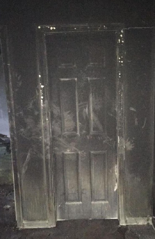 “While the front of the door is severely damaged the closed door protected the bedroom and its contents.