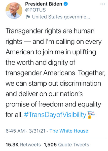President Joe Biden marks March 31st, 2021, as the International Transgender Day of Visibility.