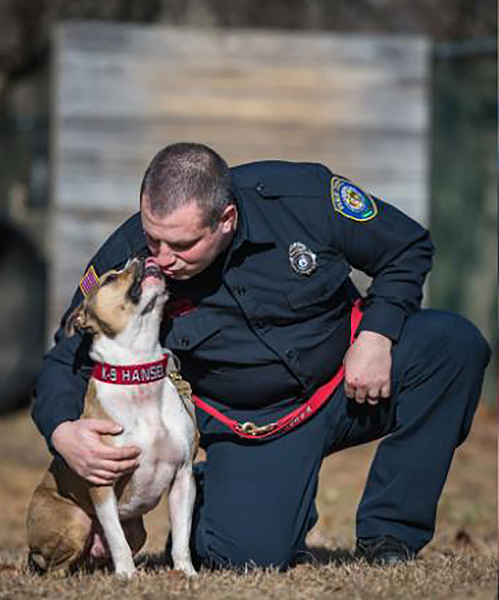Hansel was rescued from a dogfighting ring along with four other dogs, including his sister Gretel. They were taken to the Throw Away Dogs Project, a nonprofit that rescues dogs and gives them training to become K9 officers.