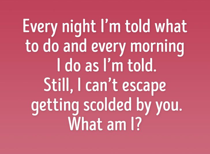 “Every night I’m told what to do and every morning I do as I’m told. Still, I can’t escape getting scolded by you. what am I?”
