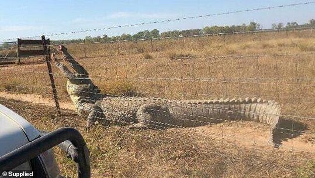 A barbed-wire fence and the fact the crocodile was not hungry because he has just eaten a calf were the reasons the giant animals didn’t attack the defenseless man, NT News reported.