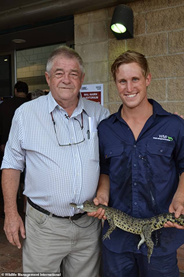 The image went viral of MJ, who died following a fight with another crocodile, hanging by its mouth, showing off the enormity of the animal.
