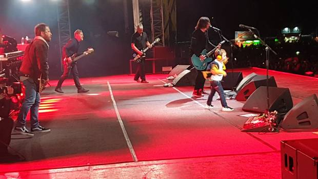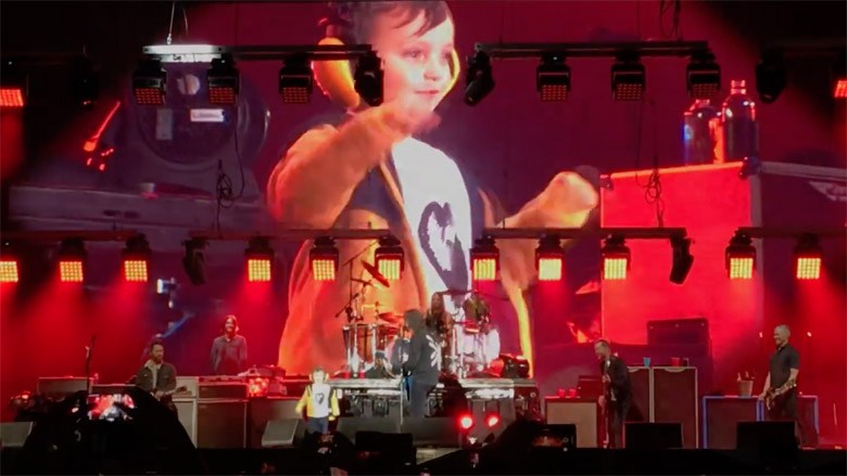 Luckily, Dave Grohl, the front man of the band, spotted the little kid holding a sign reading it was his first concert.