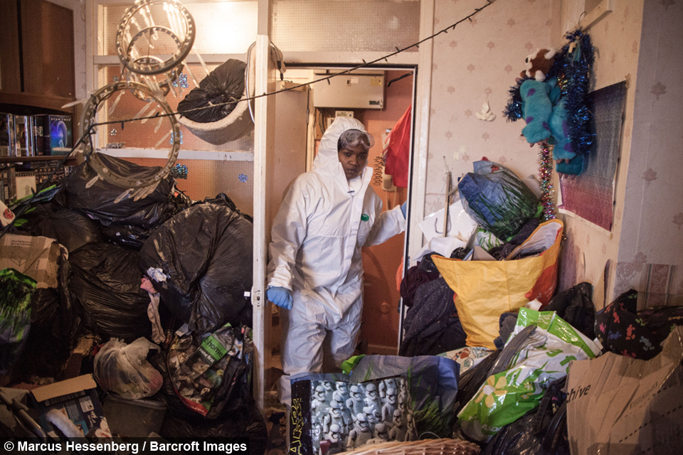 Cleaning company, N Gervais sent Hoarding specialists Tee and Caz, from Birmingham. They arrived at Sally’s home to clean up.