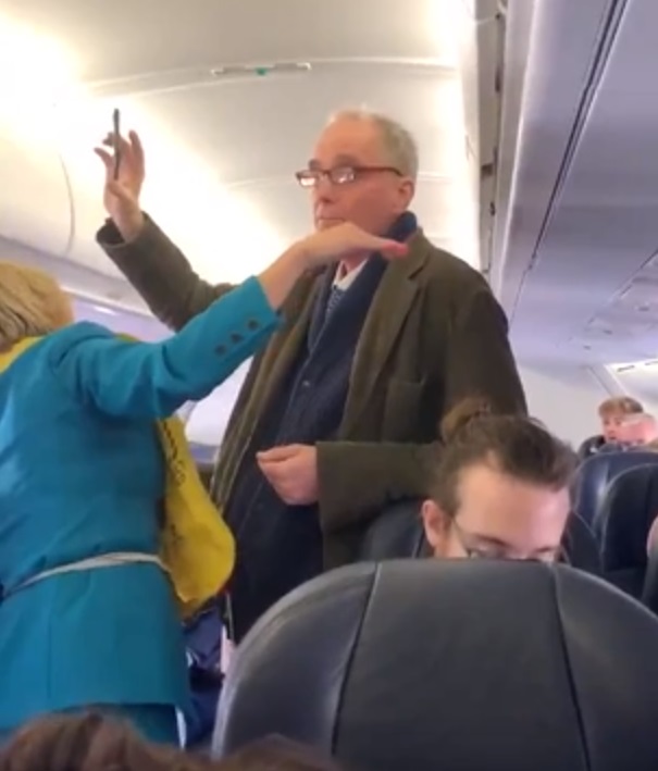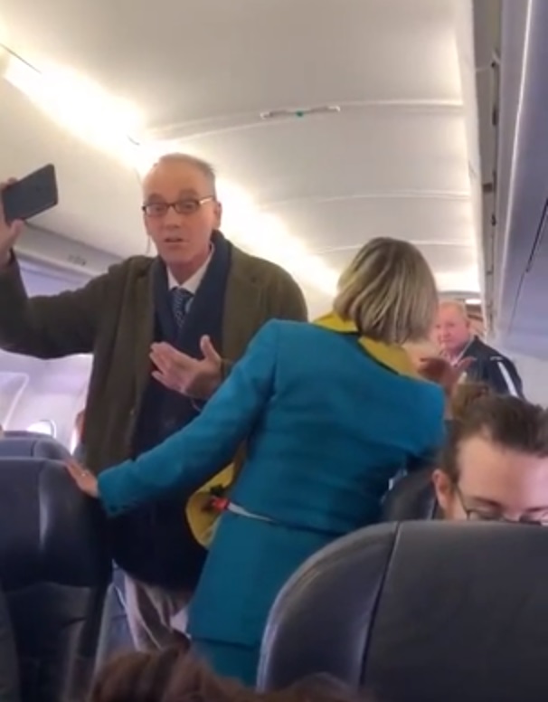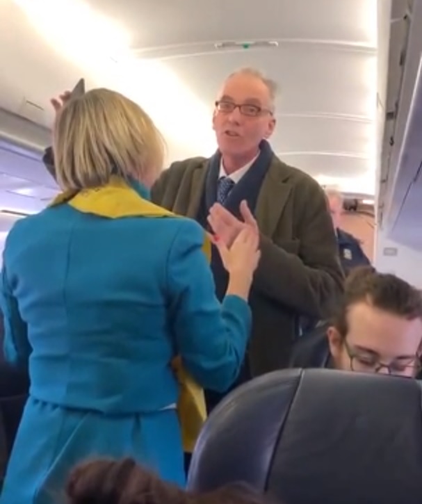 The protestor, however, kept on apologizing and coming up with poor excuses to refuse to sit down or leave the plane.