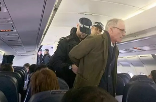 A climate change activist belonging to the Extinction Rebellion was caught on camera protesting on a plane by refusing to sit down.