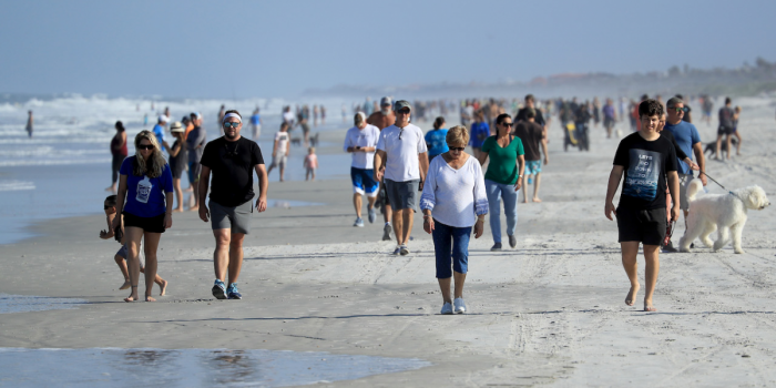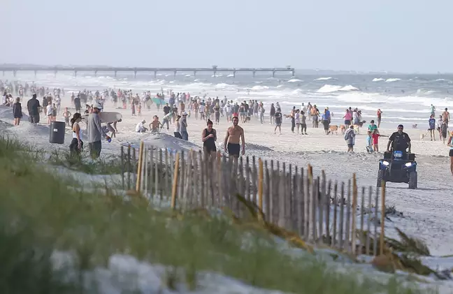 Florida beaches reopened on April 17 as officials relaxed social distancing rules, prompting locals to flock to the shore.