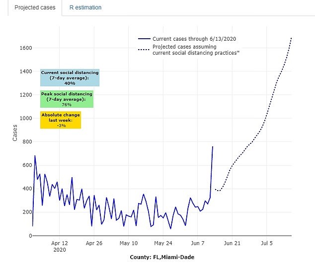 As per the PolicyLab’s predictions, confirmed daily COVID-19 cases in Miami-Dade alone are set to reach over 1,600 by mid-July under current social distancing practices.