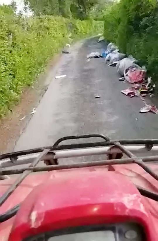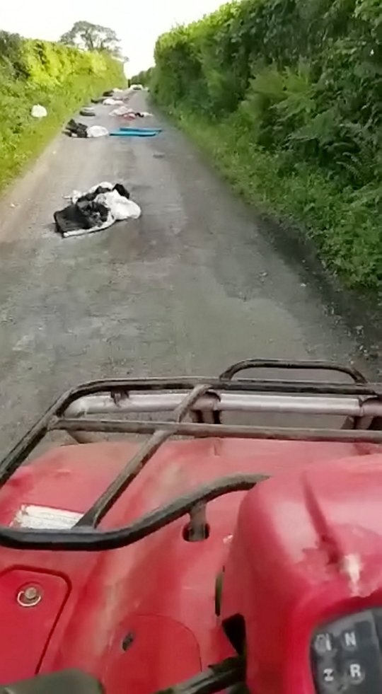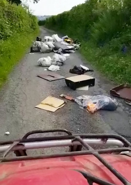 The video shows fly-tipped rubbish on a mile-long country lane.
