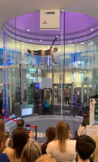 She has grabbed the attention of the people by performing her skilled flying dance in a wind tunnel indoors.