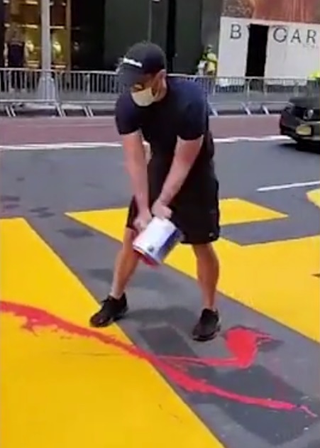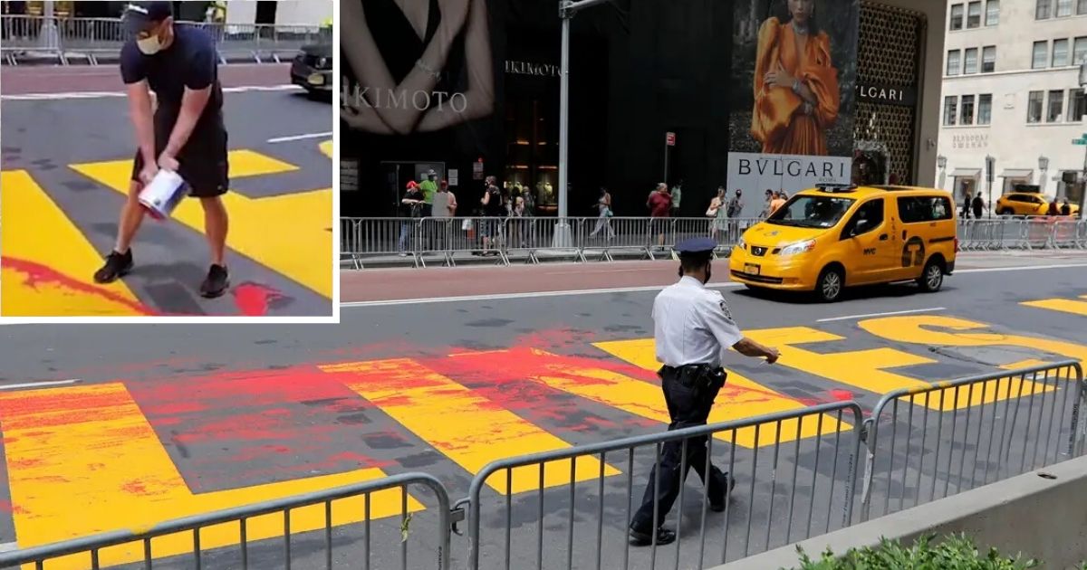 According to the reports, the incident occurred at noontime on Monday when an unidentified man, who is believed to be in his 20s or 30s, took to Manhattan’s 5th Avenue to pour red paint over the Black Lives Matter mural that was approved by the New York City officials.
