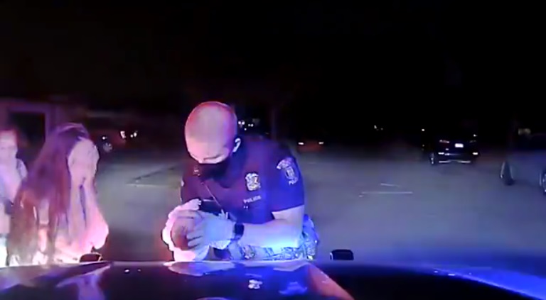 In the footage taken by the camera of the police cruiser, Maciejewski is seen bringing the baby girl to the car hood as her hysterical mother cries and pleads for help.
