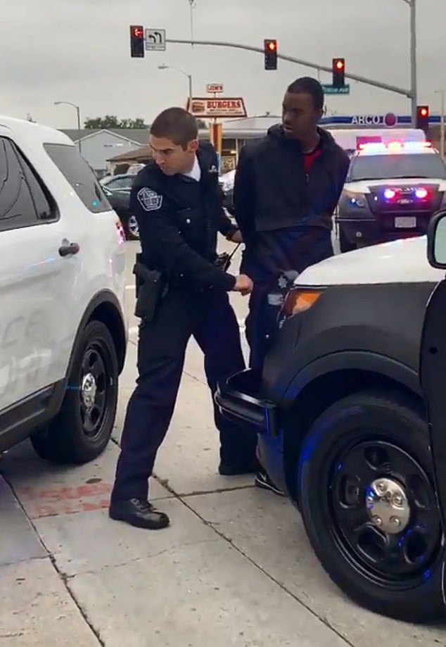 One of the officers responded by saying they were called to the scene over a robbery and claimed the 24-year-old “loosely” matched the description of the perpetrator.