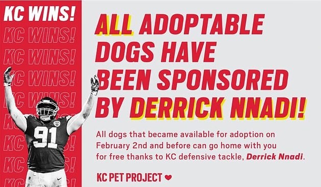 “Kansas City is on cloud nine this morning with last night’s win and we’re thrilled to be partnering with Derrick Nnadi on this wonderful initiative,” Tori Fugate of KC Campus for Animal Care said in an interview with ABC News.