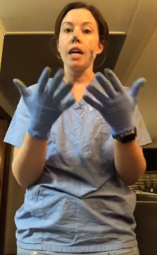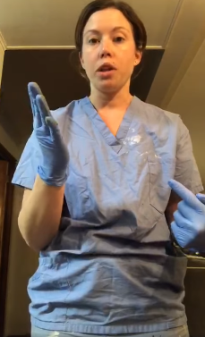 Molly, in the video, explains that there is no point in wearing gloves if you do not wash your hands after touching something.
