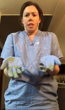 During her grocery shopping visit, she saw people unknowingly exposing themselves to the germs. Molly told that she was painting her house when she thought paint would be the perfect medium to explain the spread of germs.