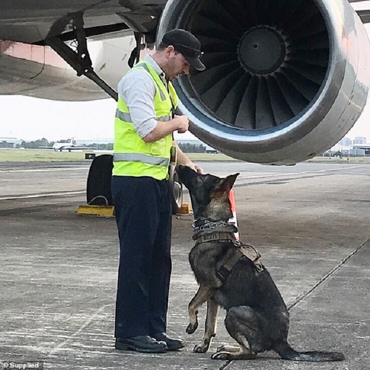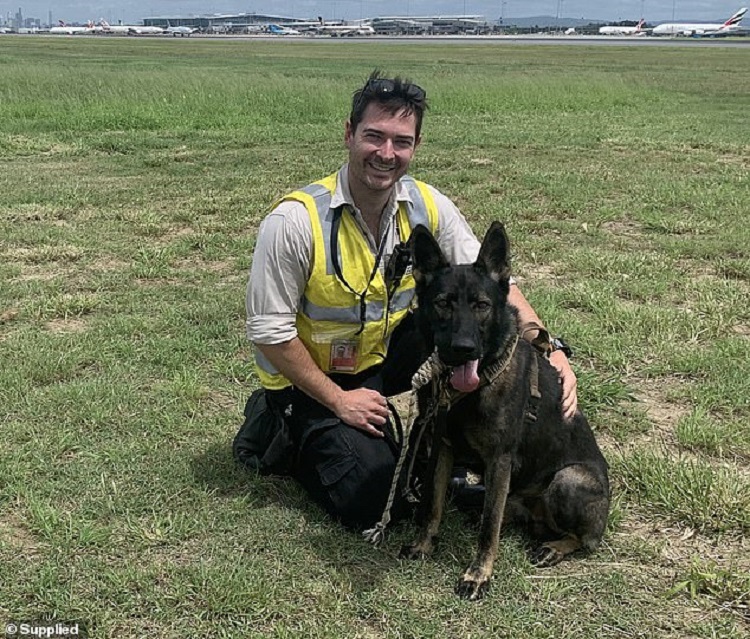 Luckily for Ozzie, he found a place at Brisbane Airport and lives with his partner and handler, Jackson Ring.