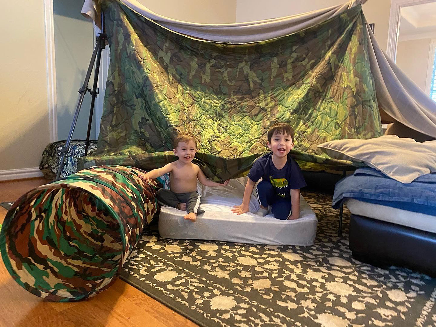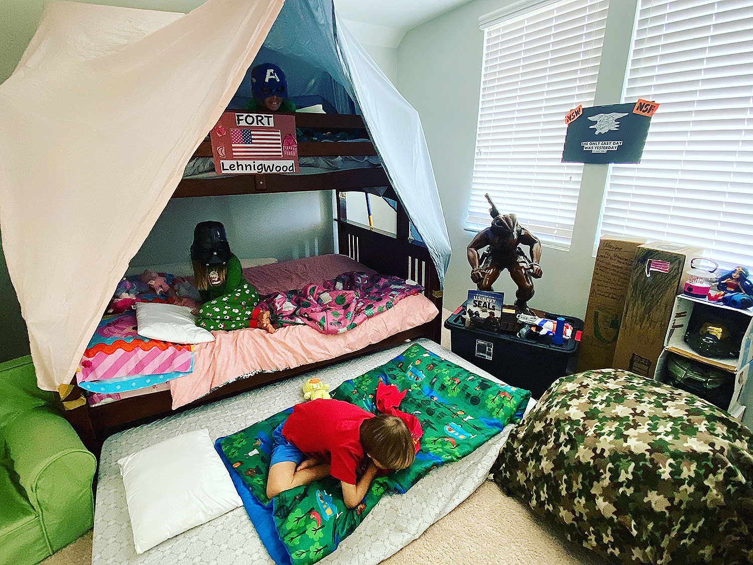 To cope up with the stress of being at home all the time, the Navy SEAL foundation asked the kids to build a fort, the best they can.