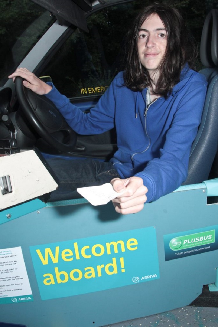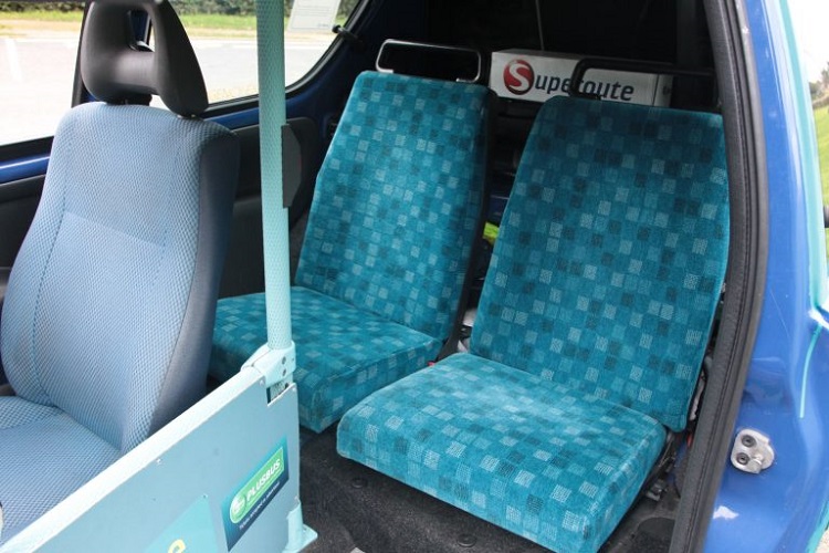 The interior of the car features the same blue-checked padding in Arriva buses and the original bus seats. The driver’s seat houses the on-board ticket machine for scanning bus passes and even has a tray to hold newspapers.