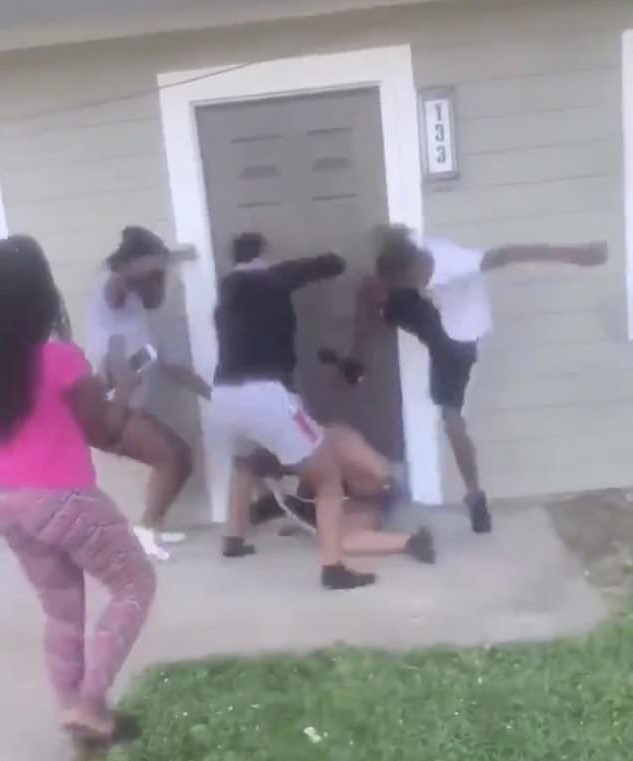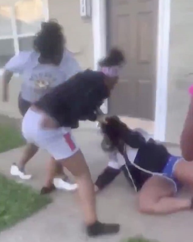 The viral video shows three female teens punching the body of the pregnant woman as she stood outside with her young daughter.