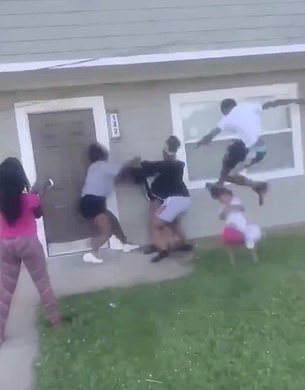 A third said: “For one why do they feel it’s okay to jump her while a baby is holding on to the mom’s leg? Two when they saw he kicked the baby they should’ve stopped right there like why are people standing there like its okay.”