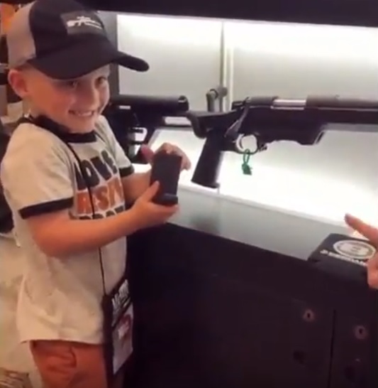 A video of a four-year-old boy repeatedly loading and pulling the trigger of a rifle at an NRA convention has gone viral on the Internet.