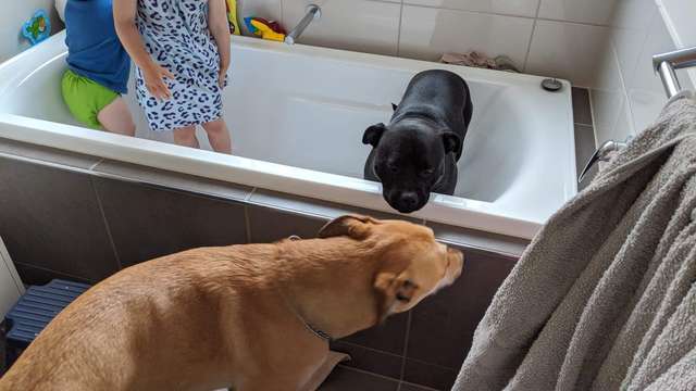 “She will join them at bath time at every chance she gets,” Nicole added as she clarified how the pooch sneaks out of the house in the evenings every time she gets the chance.