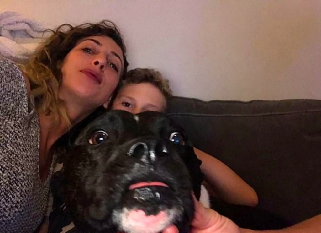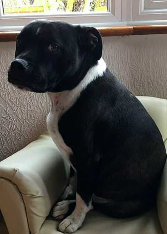 The funny video shows how the Staffordshire Bull Terrier says hello to its owner to make her laugh.
