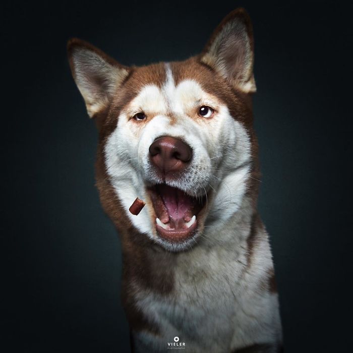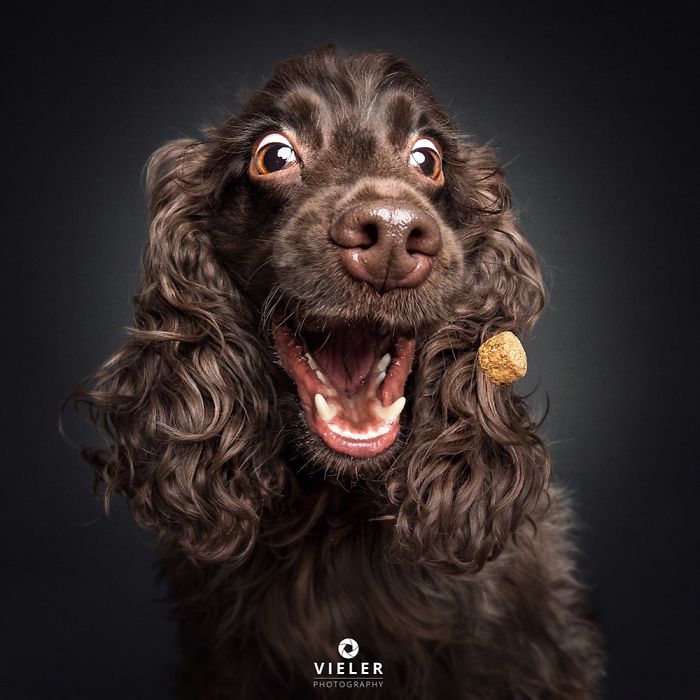 Christian Vieler is a photographer who finds joy in capturing dogs, specifically their silly reactions, on camera. He has been photographing dog models since 2013 and has even managed to collect the best examples in a book called Treat!