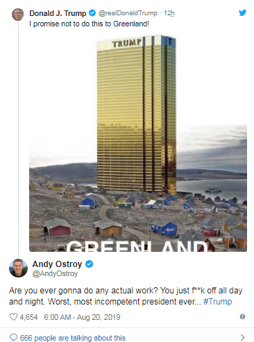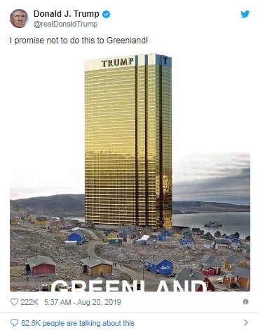 The picture was photoshopped and named the building as Trump International Hotel, Las Vegas. However, he promised that this would not happen in Greenland.