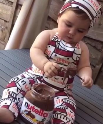 It is priceless to watch the baby enjoy the deliciousness of Nutella. One can watch the video all through the day without getting bored.