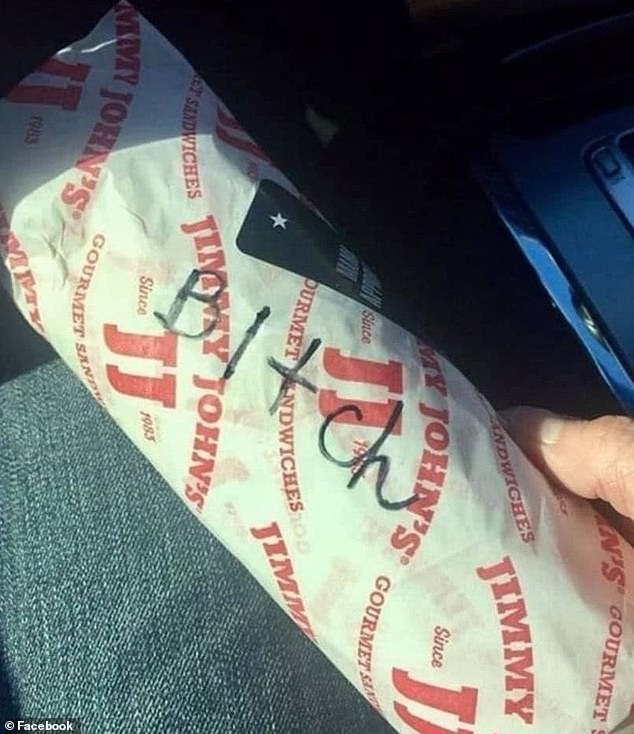 As soon as Robert Wilson Barnes left the drive-thru of a Jimmy John’s outlet, he noticed the insulting word written on the covering of his wife’s sandwich.