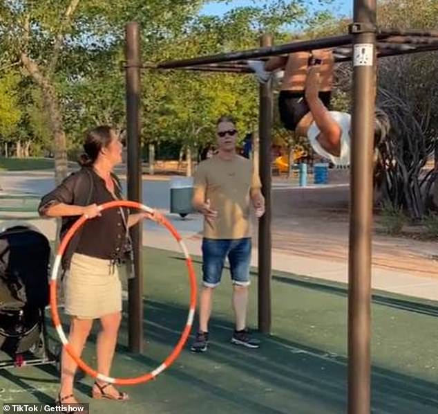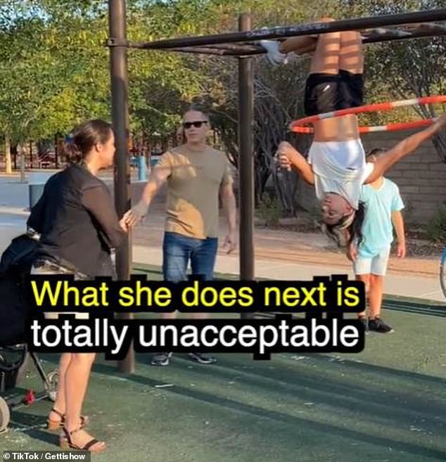 Calling the champion out for displaying her sports bra while she hung upside down on the monkey bars, the woman was furious at how careless 43-year-old Getti Kehayova could be, knowing that young children were all around her.