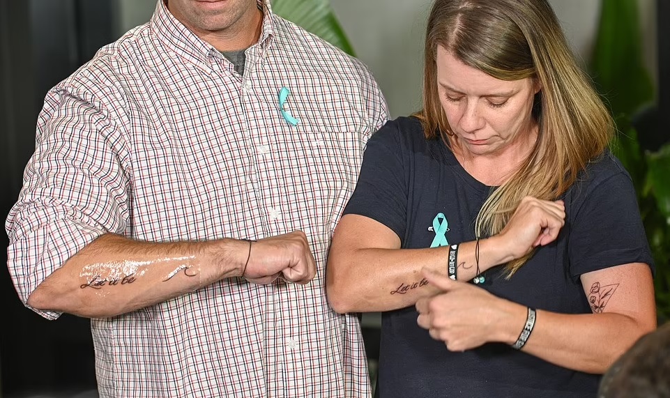 As they explained, the ‘let it be’ tattoos were based on Gabby’s designs and aim to honor their daughter’s memory for the rest of their lives.